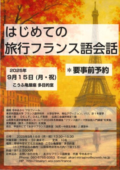 ≪終了≫【2025.9.15】はじめての旅行フランス語会話