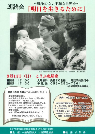 ≪終了≫【2025.9.14】朗読会 ~戦争のない平和な世界を~『明日を生きるために』