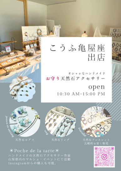 お守り天然石アクセサリー作家 *Poche de la tarte* こうふ亀屋座出店。 天然石を使用したオ...