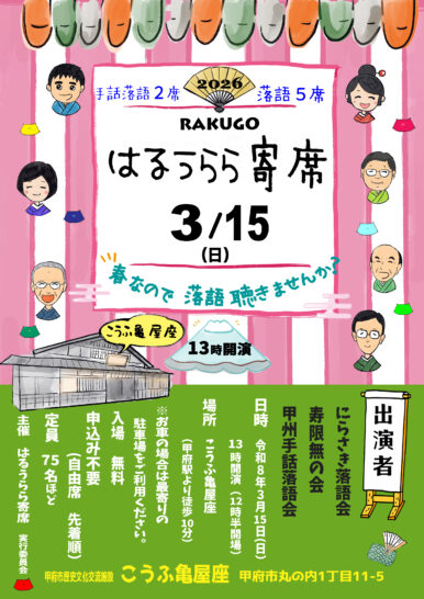 ≪終了≫〈完売御礼!〉【2026.2.21】こうふ亀屋座新春寄席(2回目公演)