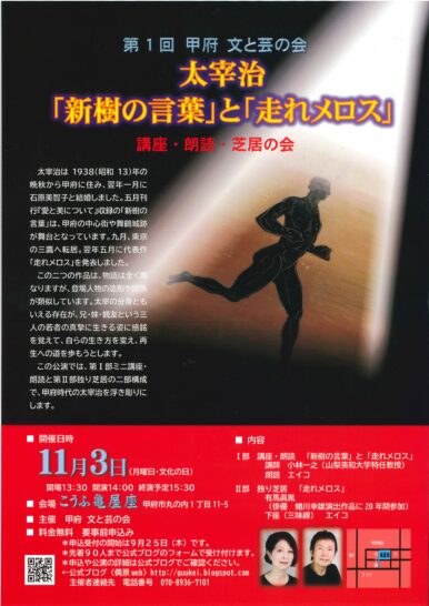 ≪終了≫【2025.11.3】太宰治「新樹の言葉」と「走れメロス」 講座・朗読・芝居の会