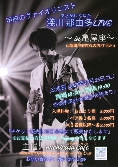 ≪終了≫【2025.10.25】甲府のヴァイオリニスト 淺川那由多 LIVE ~in亀屋座~